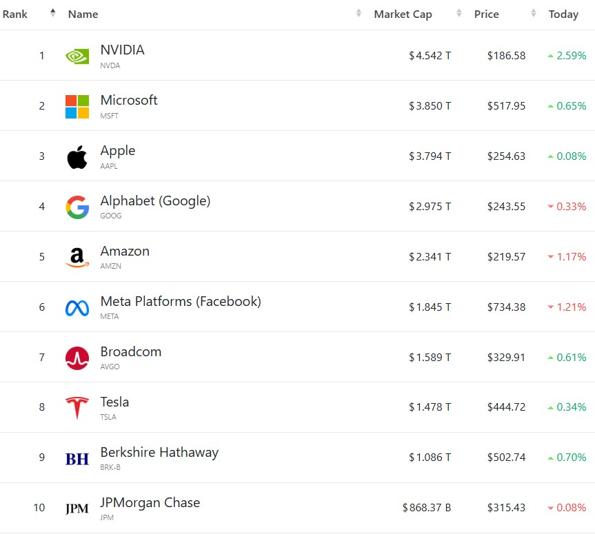 이날 엔비디아는 전 거래일 대비 +2.59%, 마이크로소프트 +0.65%, 애플 +0.08% 테슬라 +0.34% 상승하였습니다. 반면에 아마존 -1.17%, 알파벳 -0.33%, 메타 -1.21% 하락하면서 거래를 마쳤습니다.
