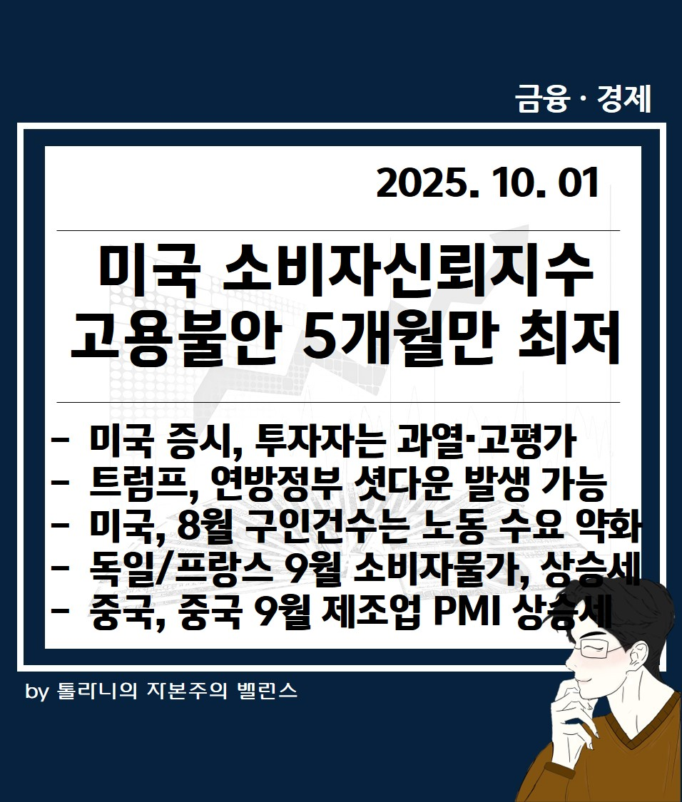 지금까지 '미국 증시, 투자자는 과열·고평가 주가 상승 지속성 의문, 소비자신뢰지수 고용불안에 5개월만 최저 등 주요 국가 경제·금융 동향' 관련하여 알아보았는데요.