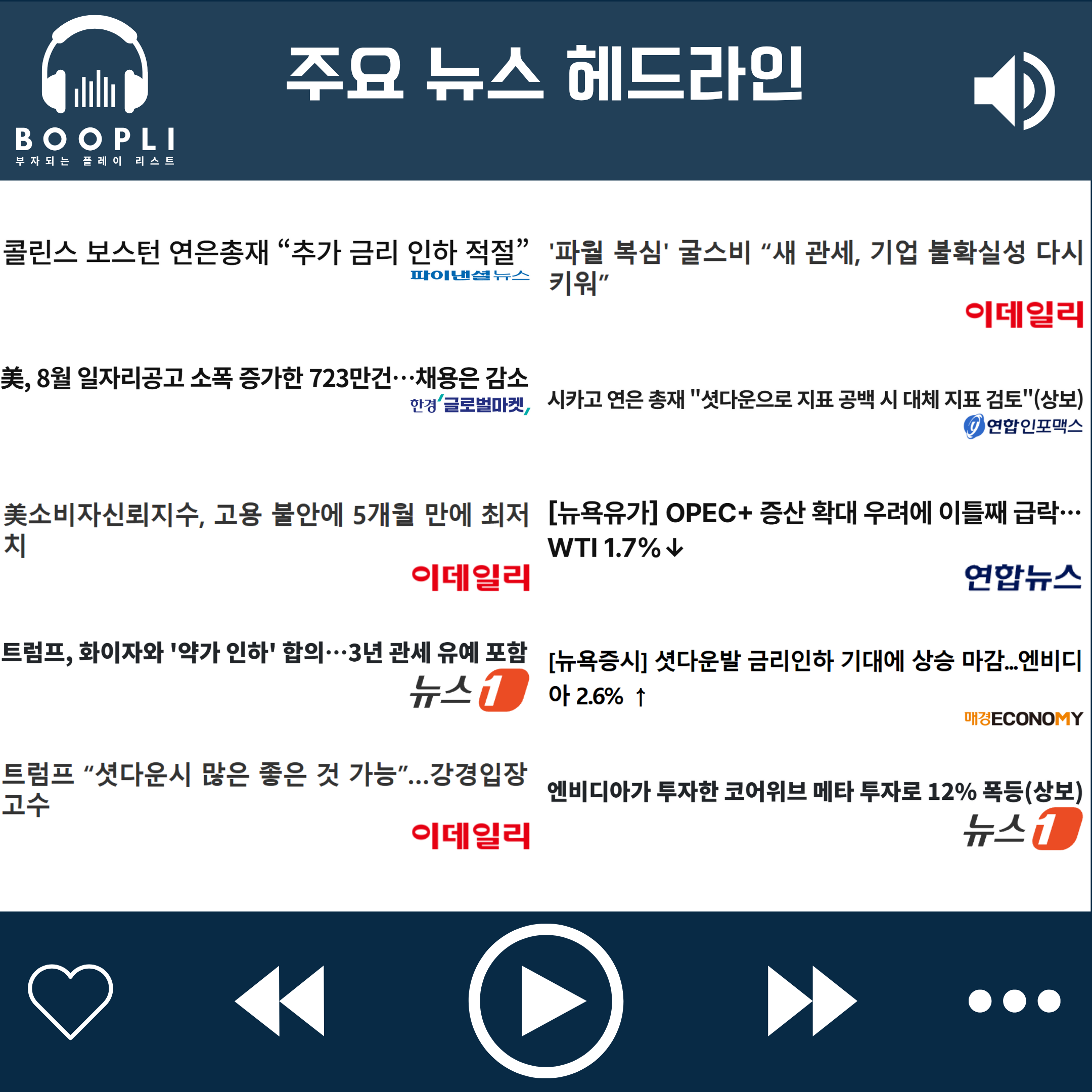 이어 발표된 8월 미국의 일자리 공고(JOLTs)는 722만 7천 건으로 예상치(719만 건)를 소폭 상회했으나, 실제 고용은 부진했고 9월 컨퍼런스보드(CB) 소비자신뢰지수도 40.6으로 5개월 만에 최저치를 기록