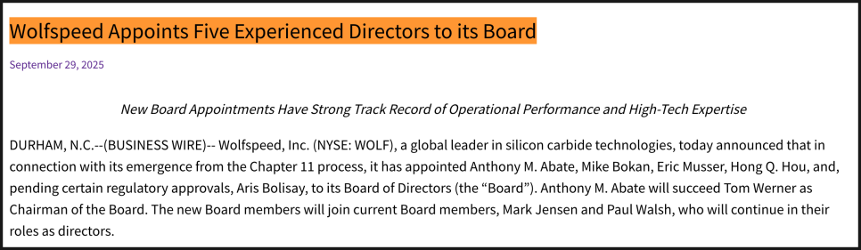 한편 울프스피드는 이번 기회를 이용해 리더십을 새로 짰습니다. 2025년 5월부터 반도체 업계에서 잔뼈가 굵은 로버트 퓌얼러가 CEO로 취임했고, 이사회도 새롭게 재편되면서 기술과 재무, 경영 경험을 갖춘 인사들이 합류했습니다.