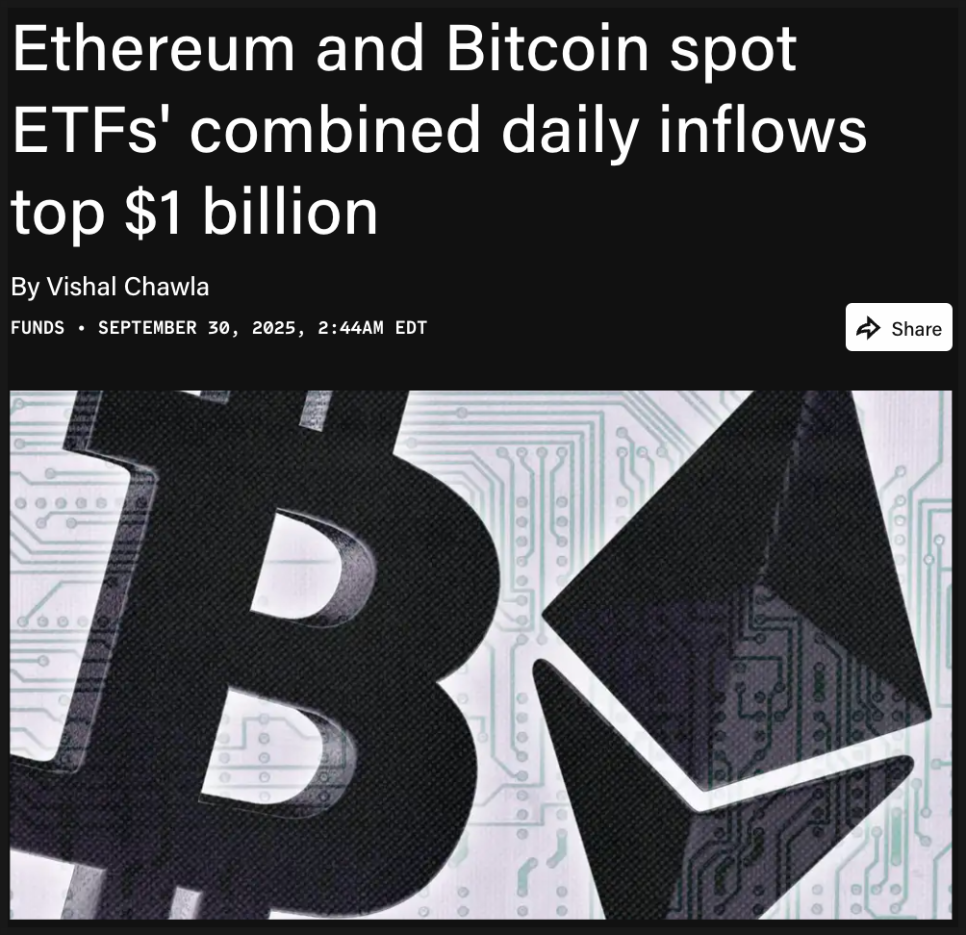 사상 최대 유입을 기록한 비트코인·이더리움 ETF