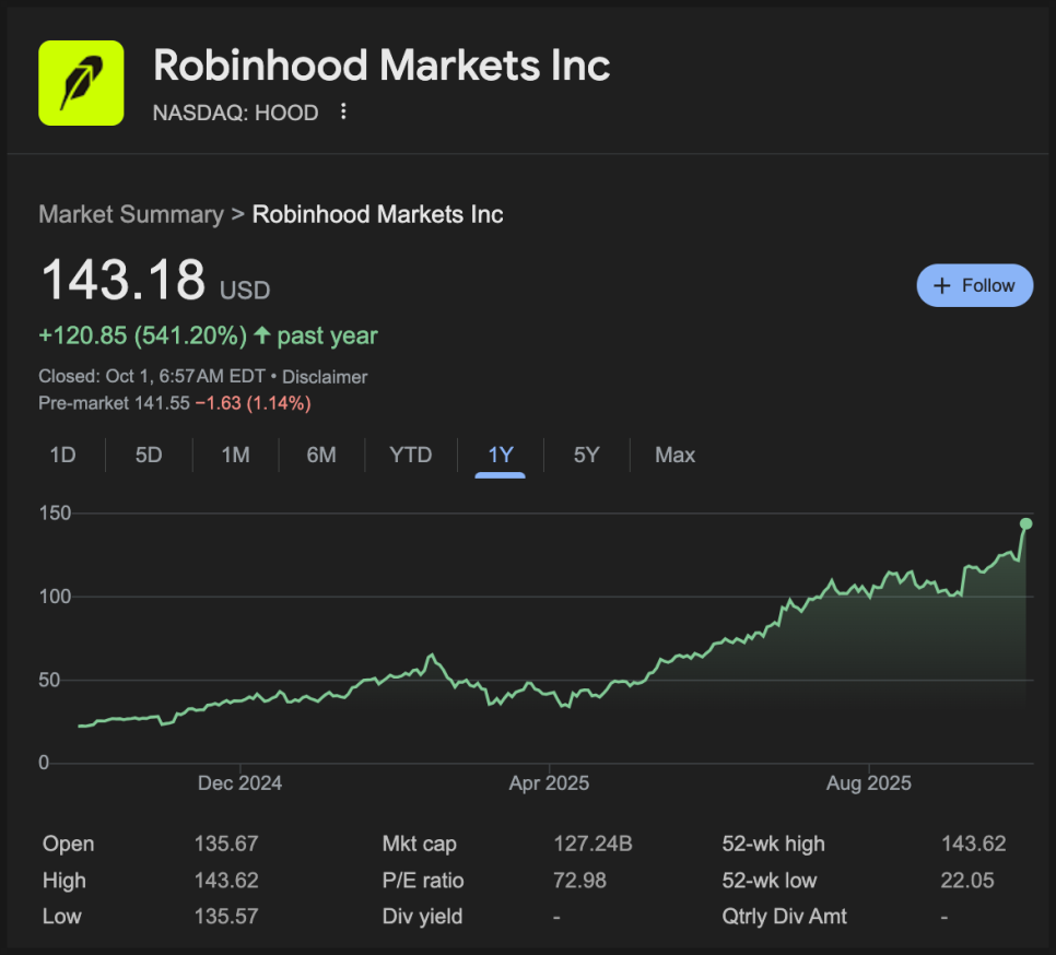 제 채널에서도 소개해 드렸지만 로빈후드 주가는 최근 엄청난 흐름을 보여주고 있습니다. 지난 1년 간 무려 500% 이상 상승했죠.
