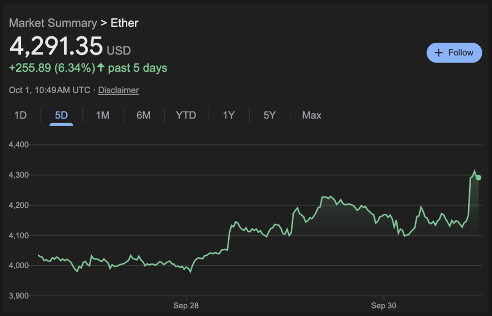 이더리움 가격 역시 비슷한 수준으로 상승했습니다.