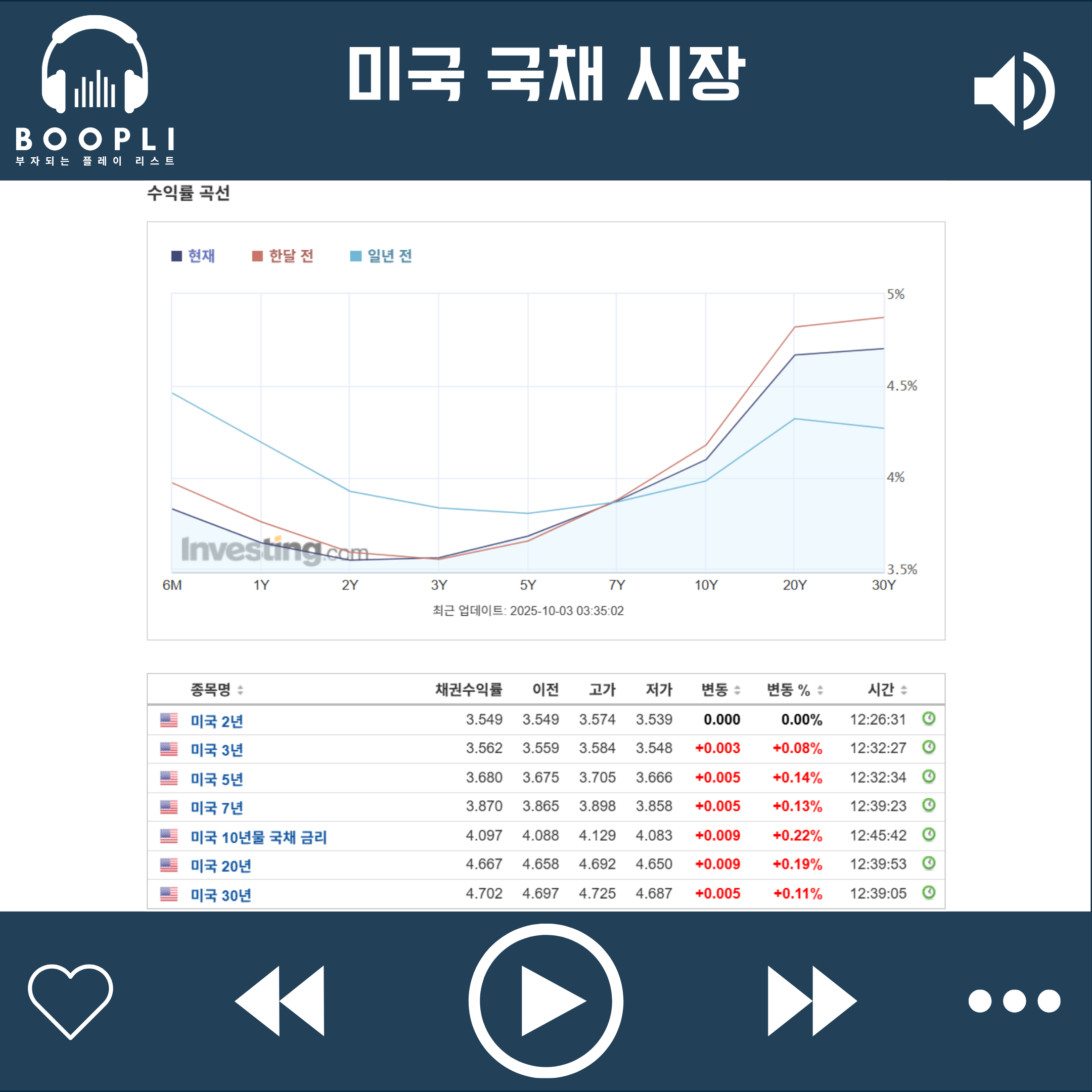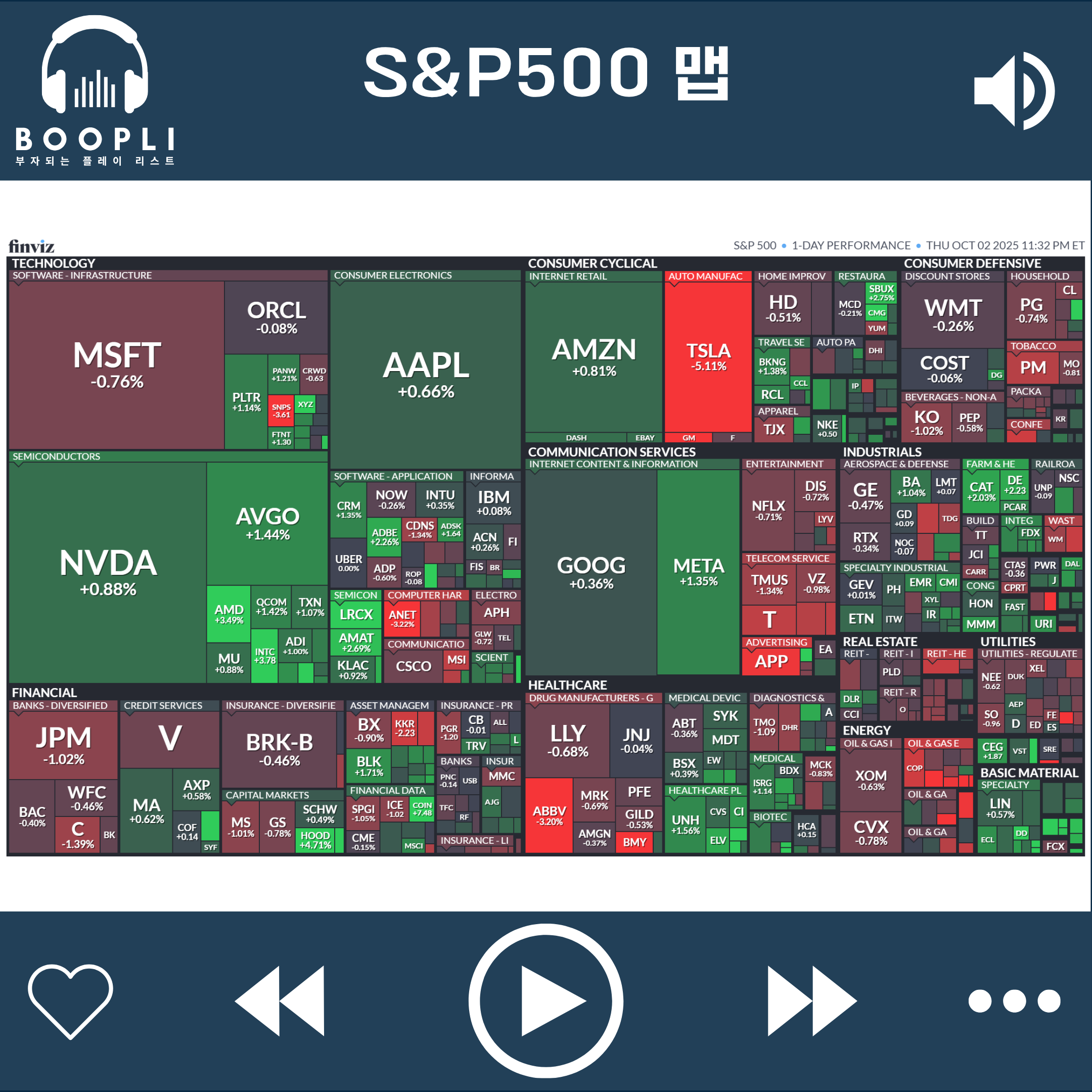 장중에는 셧다운 장기화와 고용 둔화라는 경기 불안 우려를 반영하며 국채 금리가 하락세로 돌아서자 위험자산 선호 심리가 살아났고, AI 관련 기술주 강세가 지속되며 증시는 반등