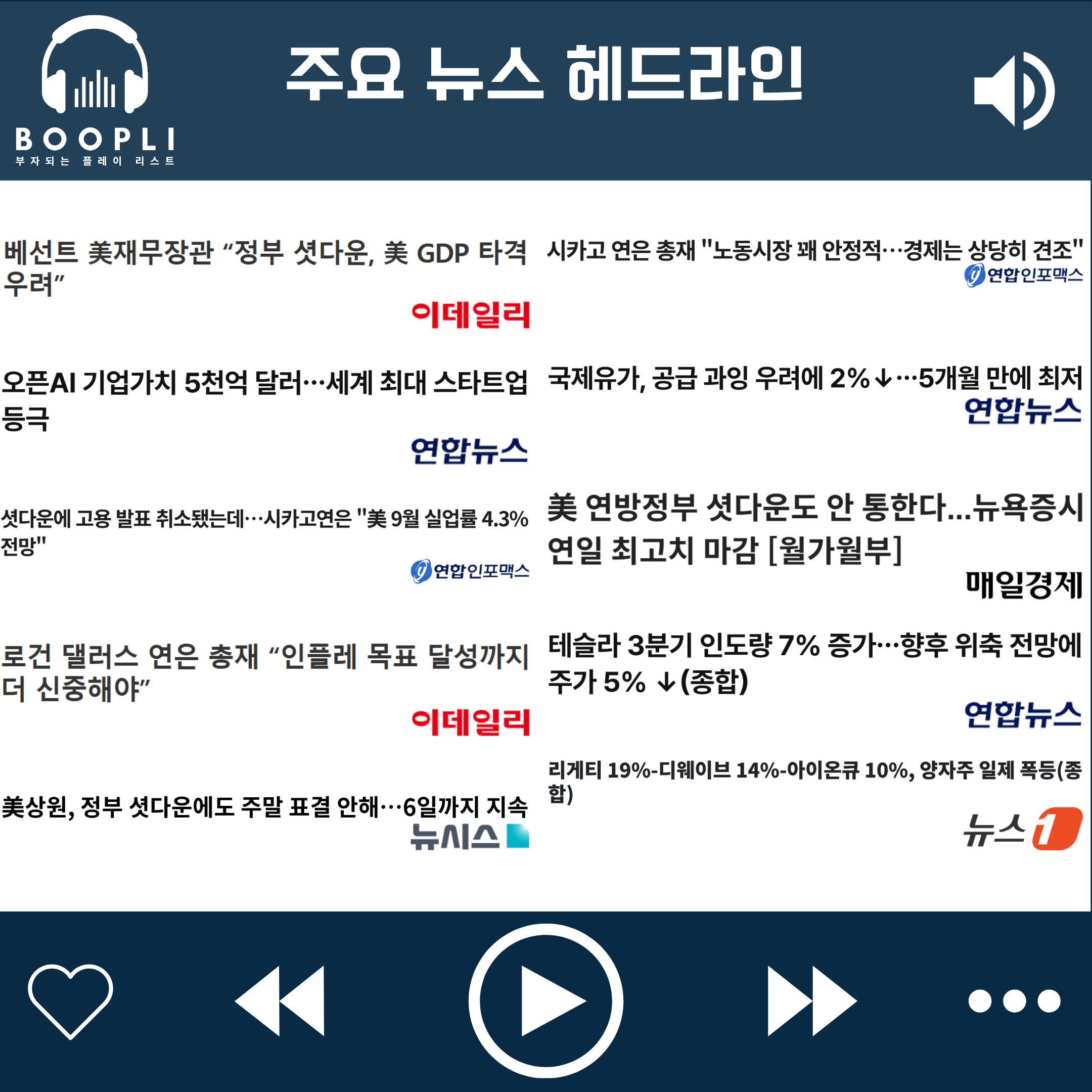 개장 전에는 스콧 베센트 미 재무장관이 셧다운이 장기화될 경우 미국 GDP에 타격을 줄 수 있다고 경고하면서 경기 둔화 우려가 확산됨