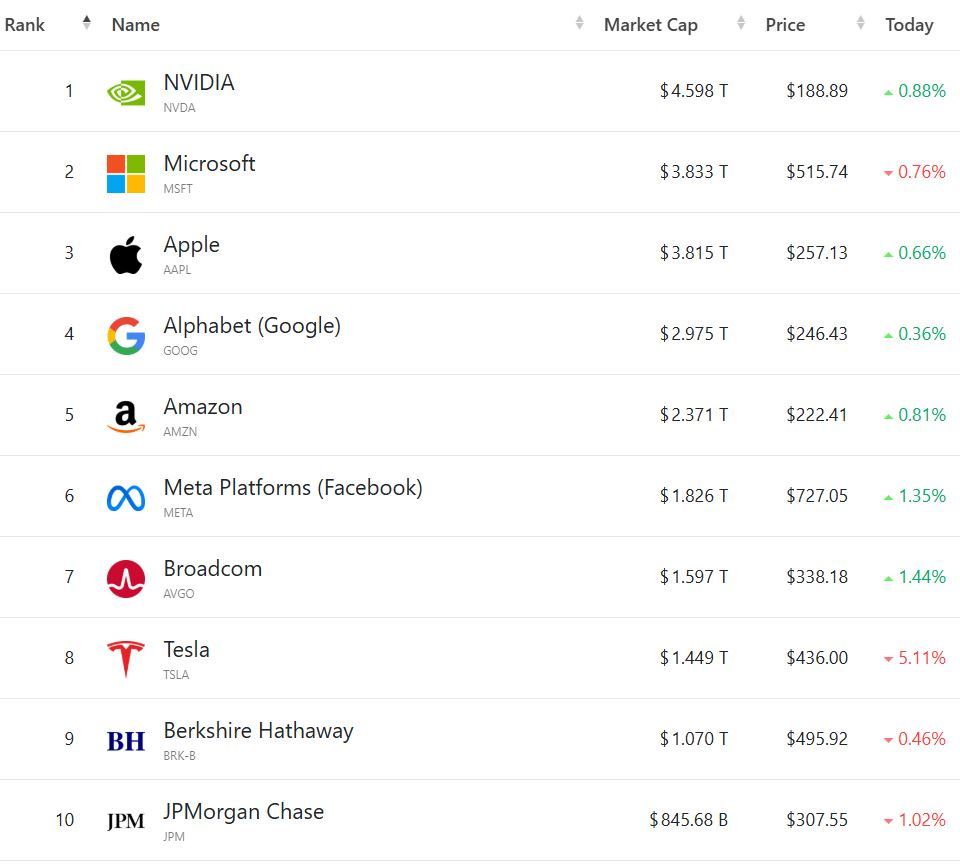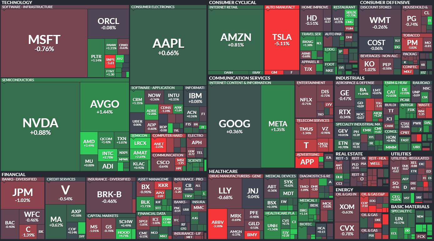 엔비디아는 이날도 +0.88% 상승하면서 연일 사상 최고치를 경신하고 있으며, 애플 +0.66%, 아마존 +0.81%, 알파벳 +0.36%, 메타 +1.35% 상승하면서 거래를 마쳤습니다. 반면 마이크로소프는 전일 대비 -0.76% 하락하면서 장을 마감하였습니다.