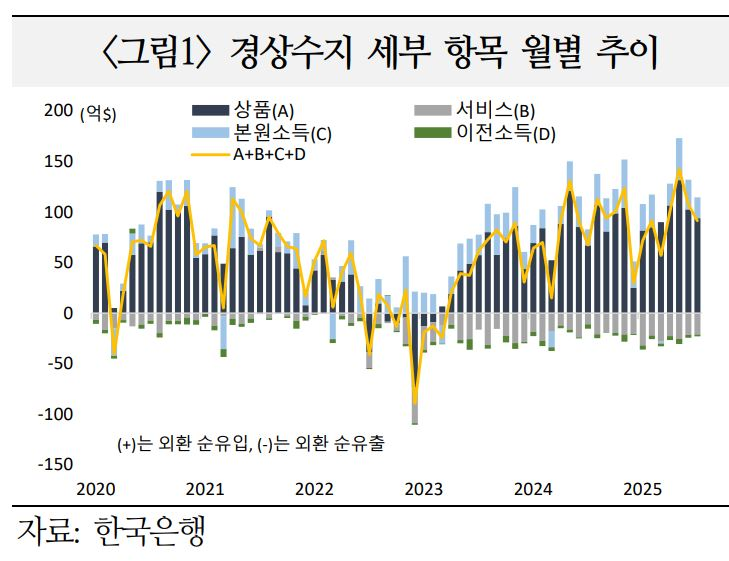 ㅇ 경상수지는 금년 들어 대규모 흑자 기조를 회복(1~8월 누적, `24년 $559.4억 → `25년 $693.0억)하고 향후 전망도 개선*되는 등 안정적인 외환 공급 경로로 작용할 것으로 예상