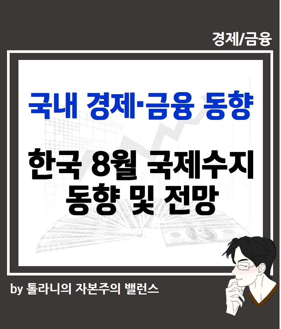 이에 ‘한국 8월 국제수지 동향 및 전망’ 관련하여 국제금융센터 보고서를 통해 좀 더 자세히 알아보도록 하겠습니다.