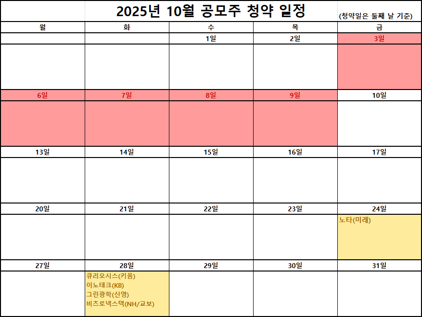 오늘은 2025년 10월 공모주 청약 일정을 정리해 보았습니다.