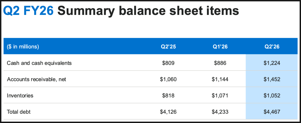 영업활동 현금흐름도 4억 6,200만 달러로 전 분기보다 39% 늘어났습니다. 재무 구조도 무난합니다. 현금 보유액은 12억 달러, 부채는 45억 달러 정도인데, EBITDA 대비 순부채 비율은 1.2배 수준으로 크게 부담되지 않습니다.