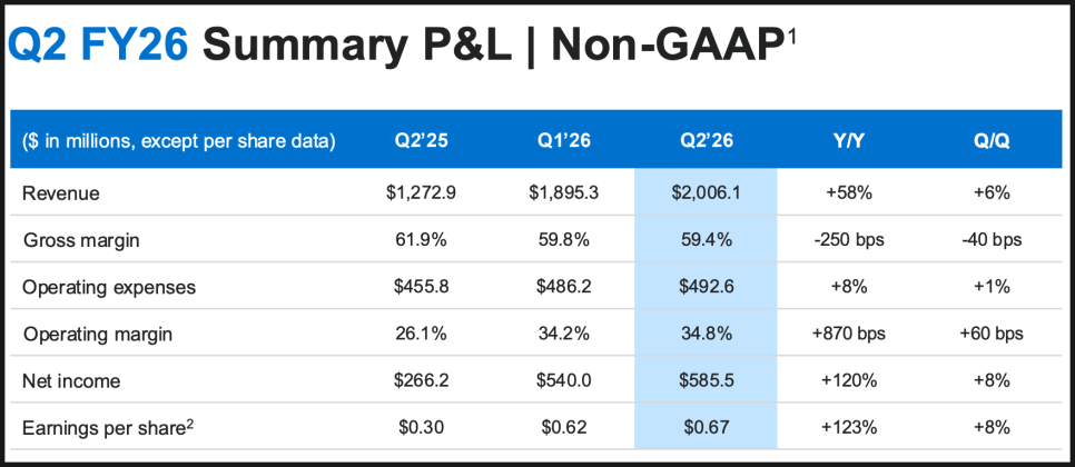 임원들이 77~78달러 구간에서 매수한 건 최신 실적과도 맞아 떨어집니다. 지난 분기 매출은 20억 600만 달러로 전년 대비 58% 증가했고, 비GAAP 기준 주당순이익(EPS)은 0.67달러로 123%나 뛰었습니다.