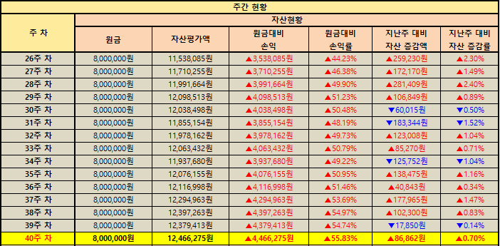 이번 주는 어느 한쪽이 급등하기보다는 모든 계좌가 균형 있게 움직인 점이 인상적이었습니다.