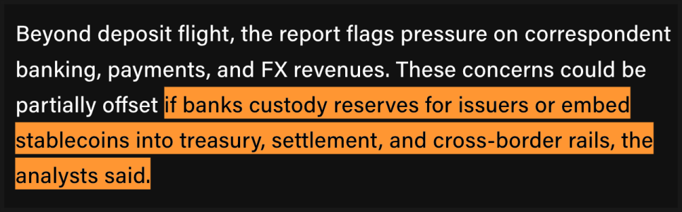 이런 변화는 은행권에도 직접적인 영향을 줍니다. 예금이 빠져나가면 국제 송금망, 결제 인프라, 외환 거래 수익이 줄어들 수 있기 때문입니다. 다만 보고서는 은행들이 스테이블코인 발행사의 예치금 보관 역할(custody) 을 맡거나, 스테이블코인을 결제 및 송금 시스템에 통합한다면 일정 부분 상쇄가 가능하다고 덧붙였습니다.