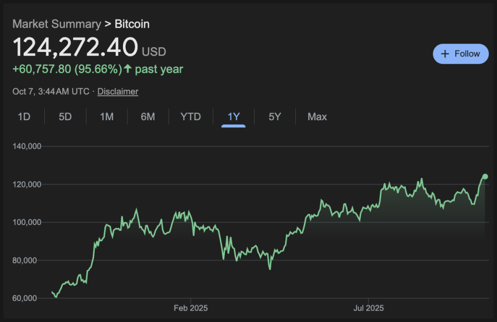 비트코인이 다시 역사를 썼습니다. 세계 최대 암호화폐인 비트코인이 12만 5,700달러를 돌파하며 8월에 세웠던 최고가를 경신했습니다. 매년 10월이 되면 비트코인 시장이 상승세를 보이는 현상을 투자자들은 ‘업토버(Uptober)’라고 부르는데요. 올해도 그 흐름이 이어지고 있습니다.