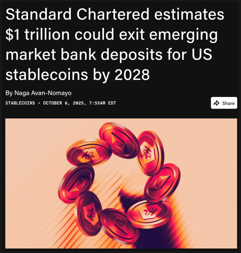 스테이블코인 폭발적 성장, 신흥국 은행 예금 1조 달러가 빠져나간다?