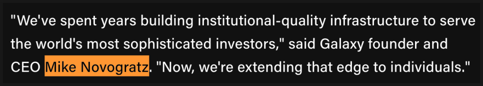 창업자 마이크 노보그라츠(Mike Novogratz)는 “우리는 지난 수년간 세계 최고의 기관 투자자에게 서비스를 제공할 인프라를 구축해왔다”며, “이제 그 경험을 개인 투자자에게도 확장할 때”라고 말했습니다.