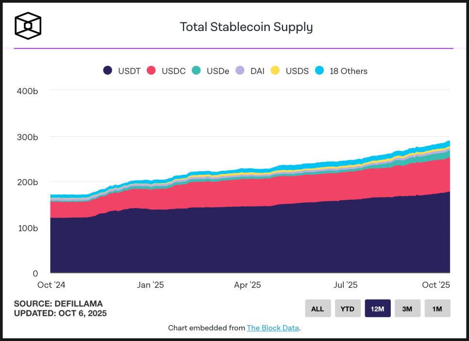 시장조사기관 디파이라마(DeFiLlama)에 따르면, 전 세계 스테이블코인 시가총액이 처음으로 3,000억 달러(약 420조 원)를 돌파했습니다. 테더(USDT)와 서클의 USDC가 대부분을 차지하고 있습니다.