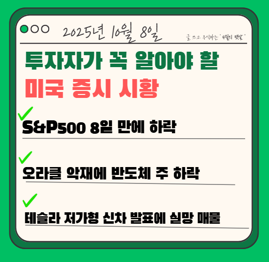 S&P500 8일 만에 하락, 3대 지숙 하락