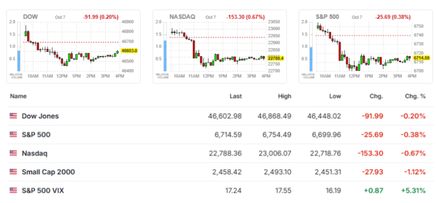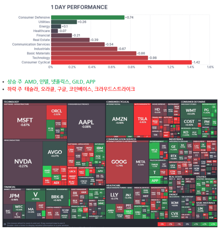 오라클 주가가 10월 7일 2.5% 하락, 장중 한때 7.1% 급락함.