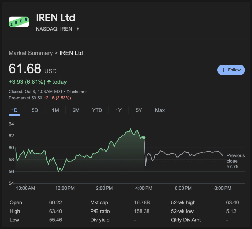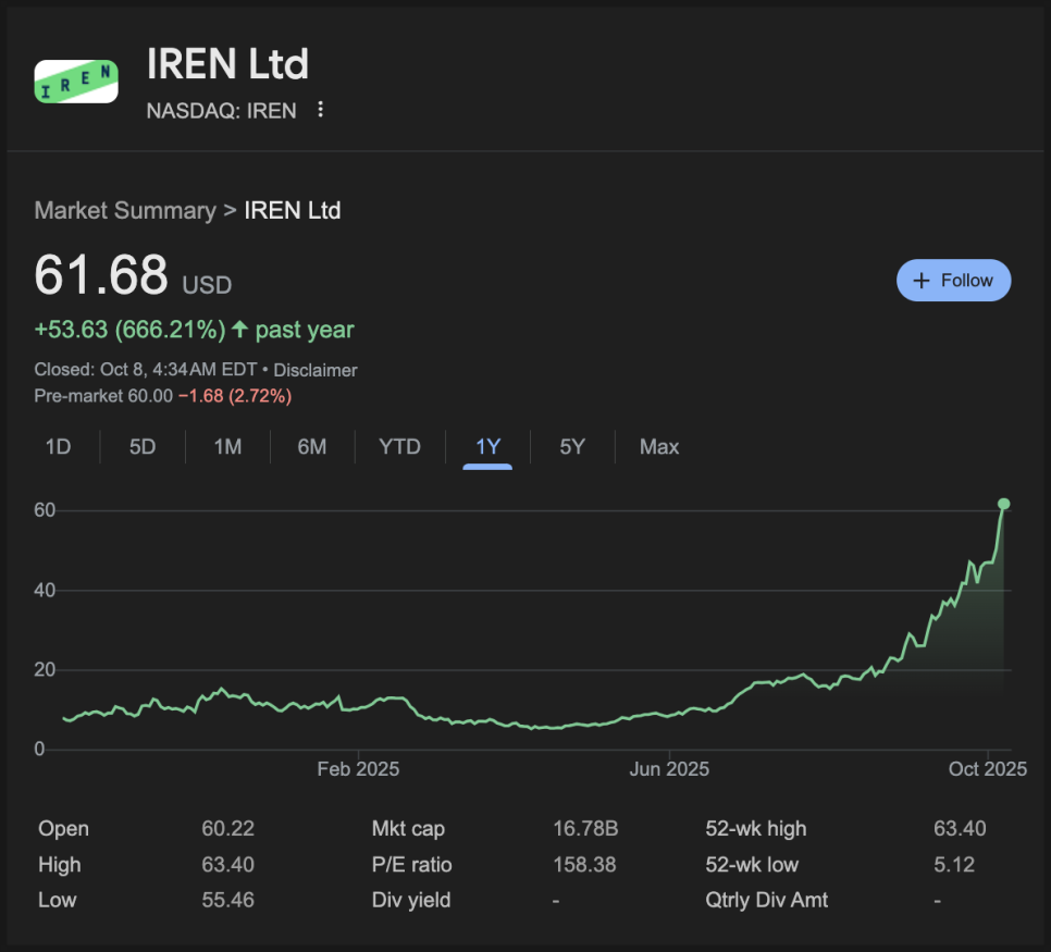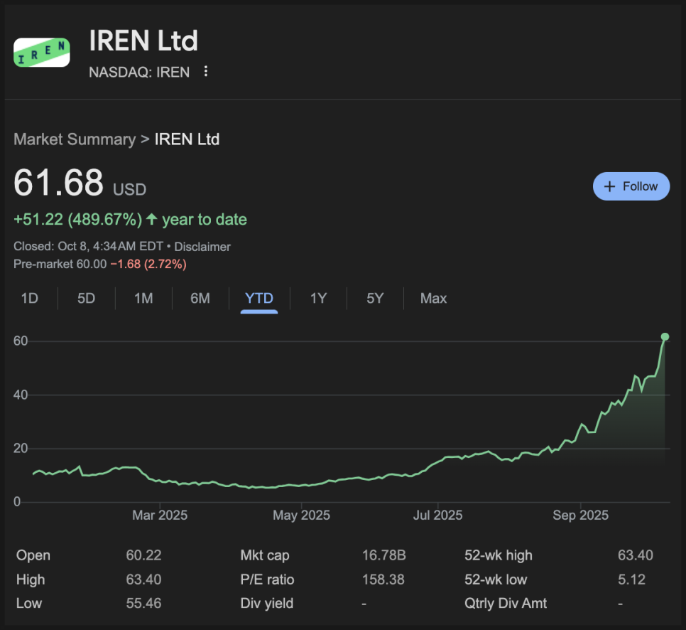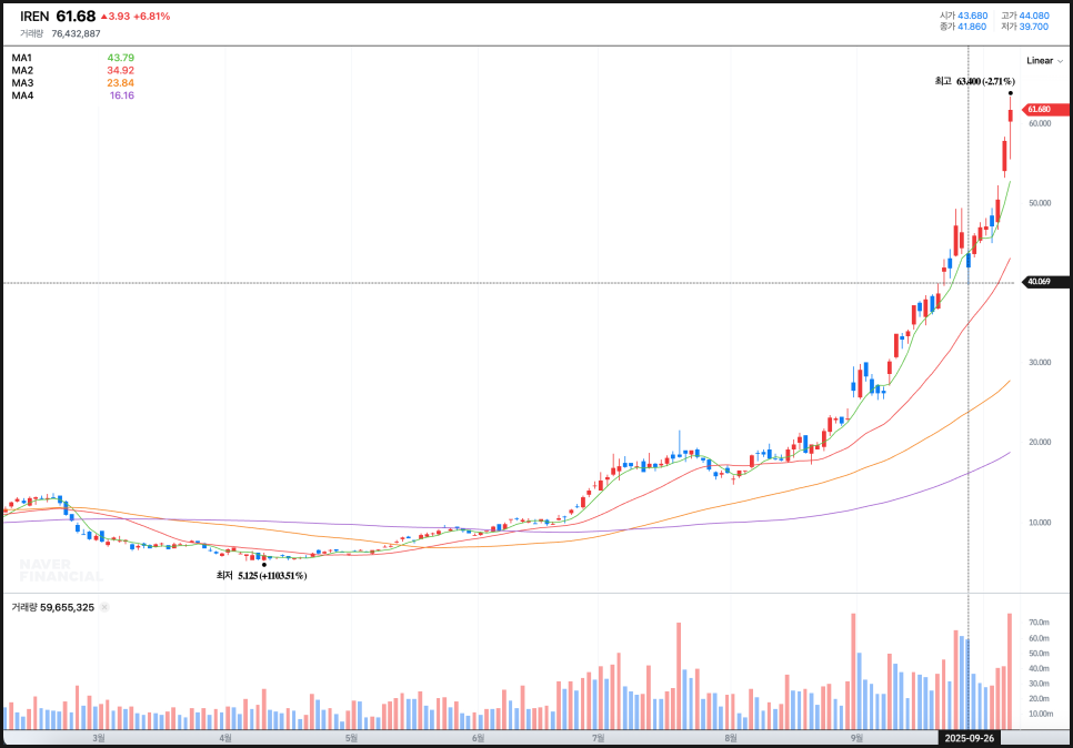 이런 상황에서 아이렌(IREN) 주가는 올해 이미 480% 이상 상승했습니다.