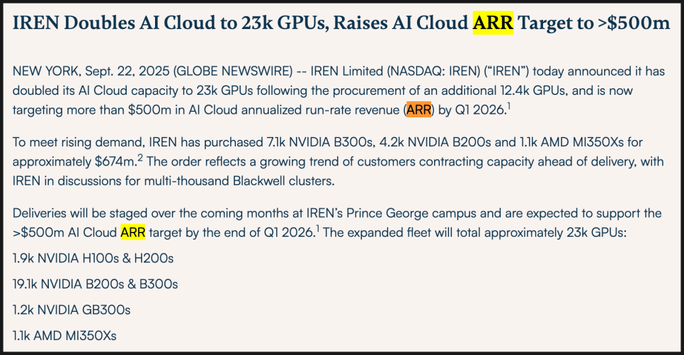 즉, 단기 성과가 아니라 지속 가능한 연간 수익 기반을 뜻하죠. 말씀드렸다시피 아이렌의 목표는 2026년 1분기까지 5억 달러의 ARR 달성입니다.