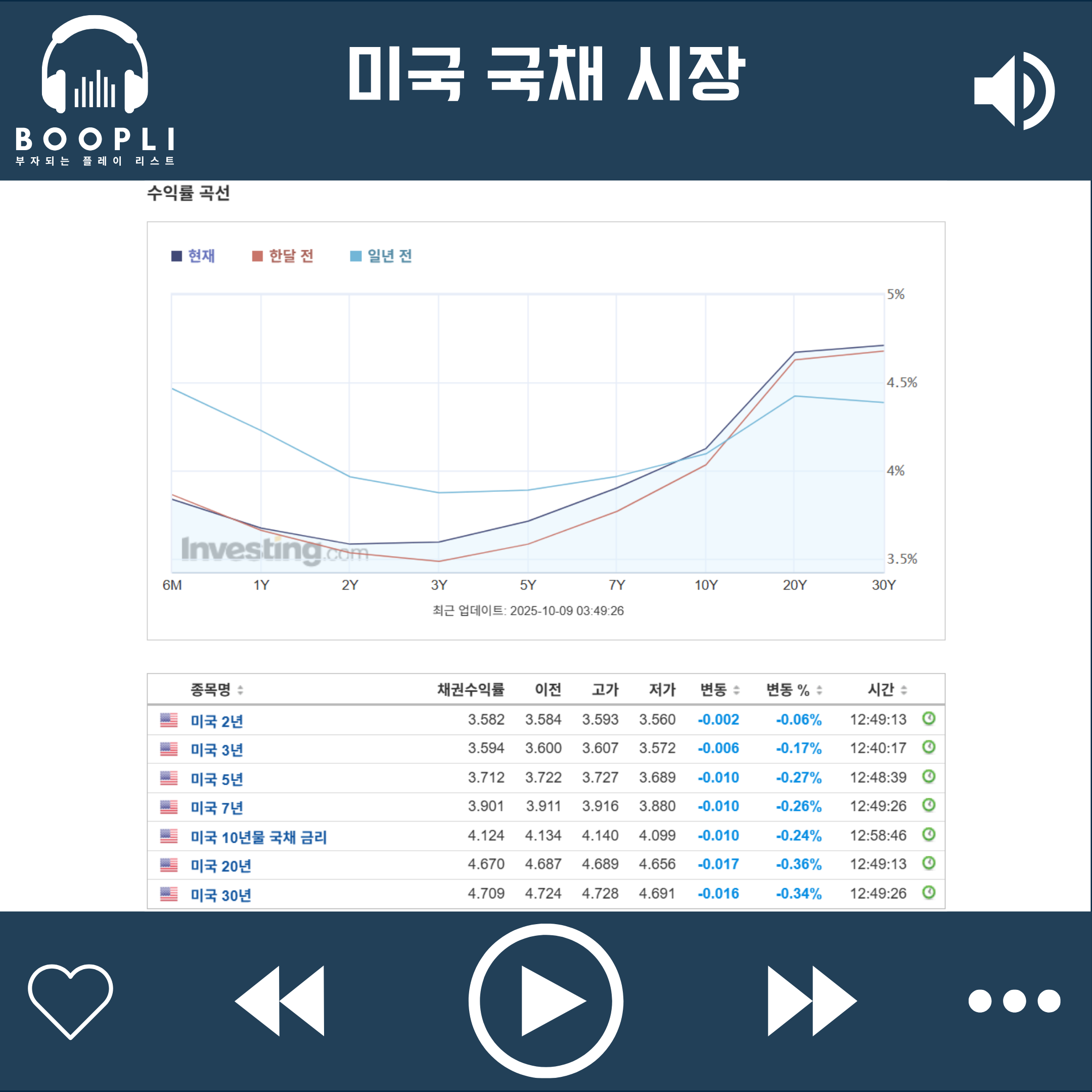 미국 국채는 연준의 9월 FOMC 의사록에서 다수 위원들이 노동 시장 둔화와 경기 리스크 증가에 대응하기 위해 25bp 금리 인하에 찬성했고, 올해 두 차례의 추가 금리 인하가 적절하다고 판단했으나, 물가 상승률이 예상보다 높게 유지될 위험이 있다며 완화 속도 조절의 필요성을 강조하자 장단기 금리 모두 소폭 상승