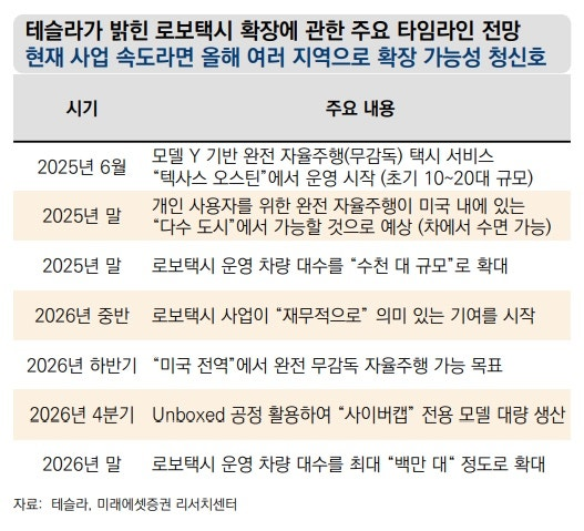 론 바론과 캐시 우드는 로보택시 1대당 연간 매출이 3~5만 달러는 될 것이라고 예측한 바 있고, 미래에셋 보고서에서는 연간 25,000달러의 순이익이 발생할 것이라고 언급했습니다.