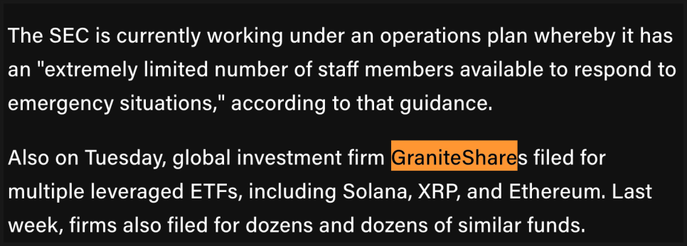 현재 SEC(미국 증권거래위원회)는 필수 인력만 남겨두고 최소 운영 상태에 있기 때문에, 승인 절차가 사실상 중단된 상황입니다.
