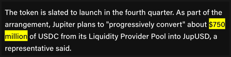 특히 주피터는 보유 중인 USDC 약 7억 5천만 달러어치를 점진적으로 JupUSD로 전환할 계획이라고 밝혔습니다. 이는 솔라나 내 유동성을 대규모로 이동시키는 프로젝트로, 솔라나 금융 생태계에 큰 변화를 가져올 가능성이 큽니다.
