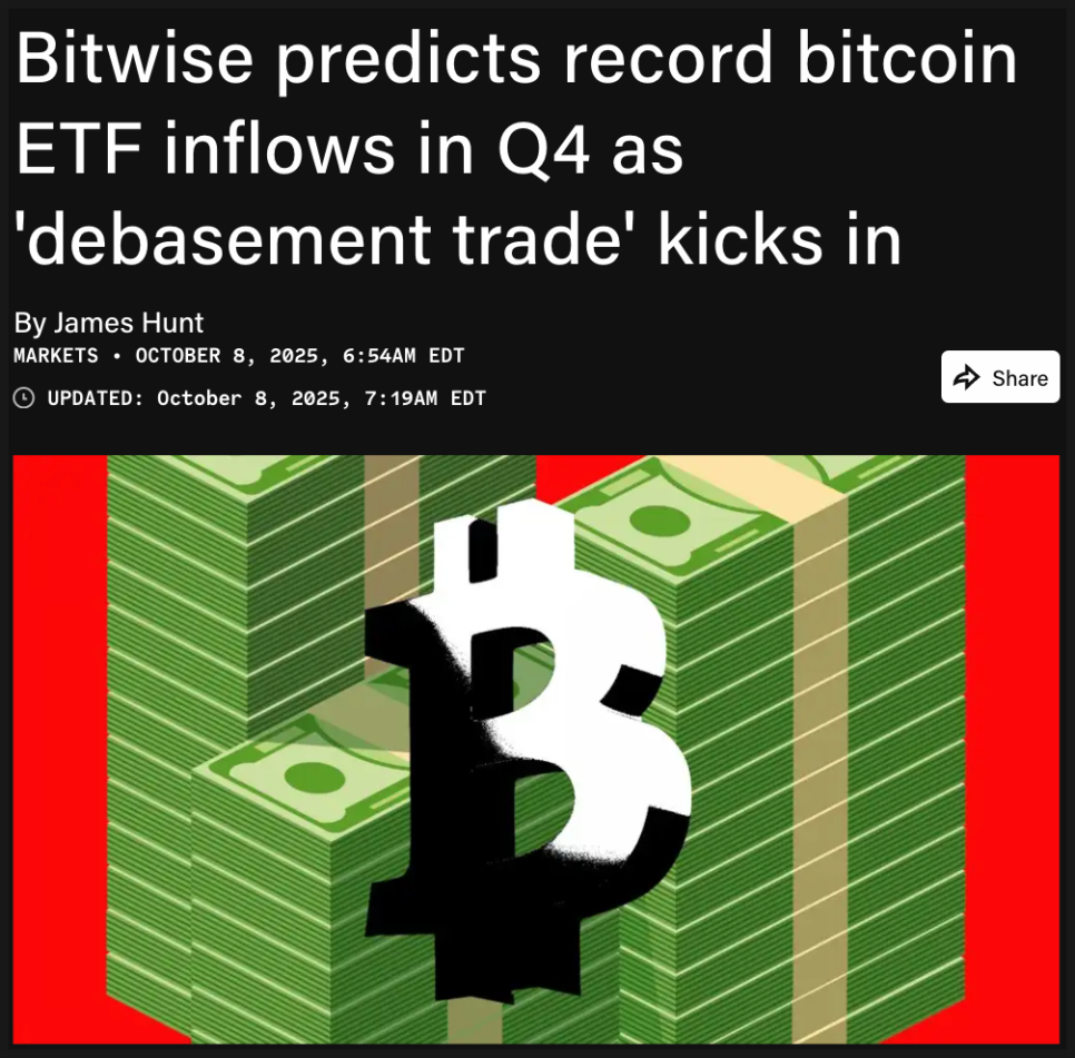비트와이즈의 CIO(최고투자책임자) 매트 하우건(Matt Hougan)은 이번 4분기 비트코인 ETF로 사상 최대 자금이 유입될 것이라고 내다봤습니다. 2024년 한 해 동안 유입된 360억 달러를 넘어설 가능성이 있다는 겁니다.