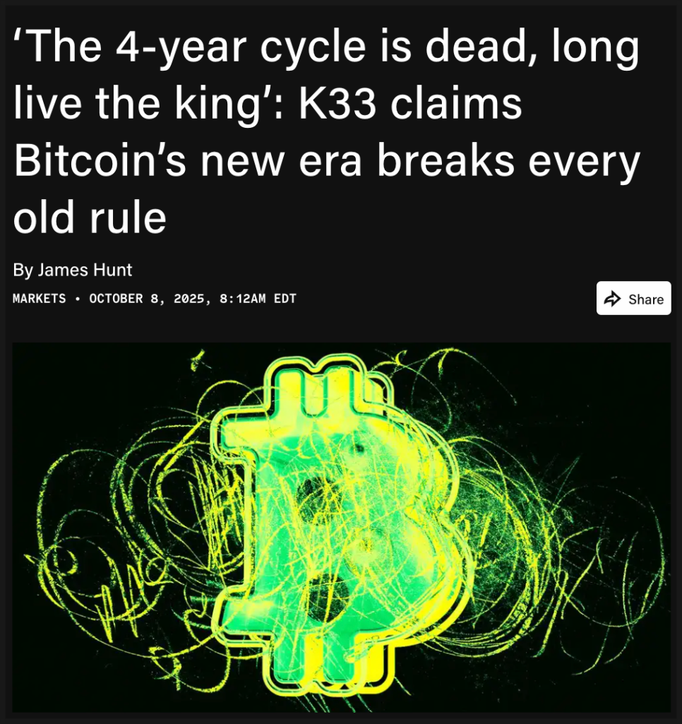 비트코인의 ‘4년 주기’는 끝났다 — K33 리서치의 분석