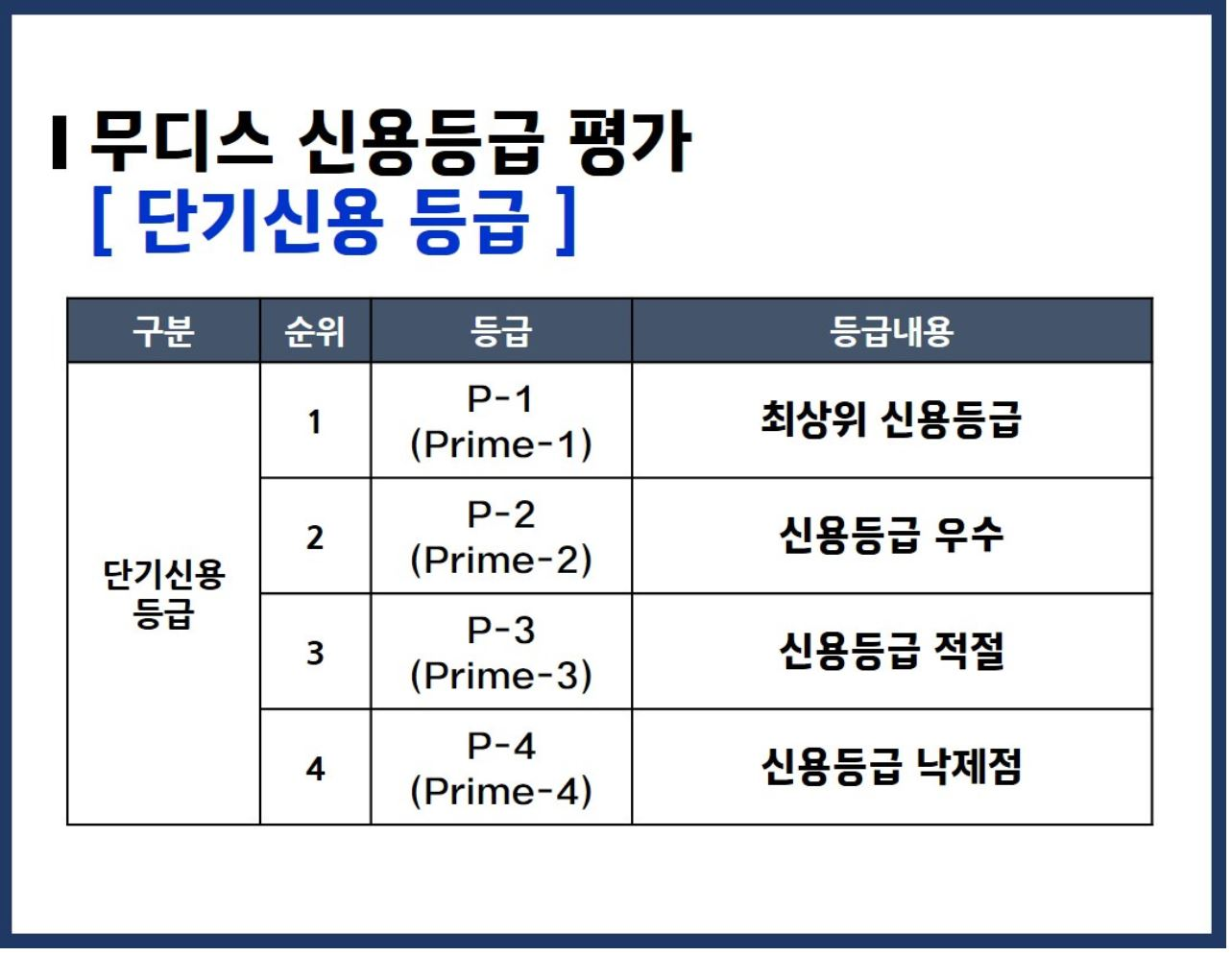 4) 단기신용등급은 P-1, P-2, P-3, P4로 분류합니다.