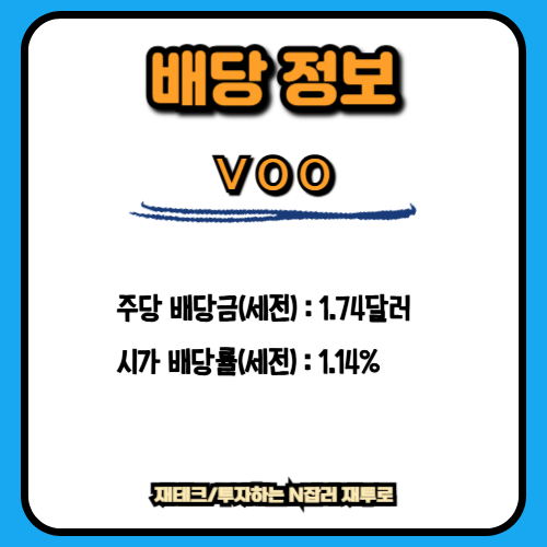 즉, 배당금이 늘고 있음에도 불구하고 배당률이 낮아지는 이유는 ETF의 가격이 빠르게 오르고 있기 때문이며 이는 오히려 VOO의 성장성이 여전히 견고하다는 반증이라 할 수 있겠습니다.