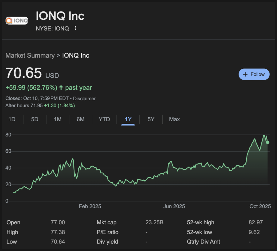 그럼에도 불구하고 주목할 점이 있습니다. 아이온큐는 최근 12개월 동안 무려 560% 이상이나 오른 종목입니다. 이런 초고성장주의 경우, 시장이 불안할 때 가장 먼저 급락하는 게 일반적이죠. 하지만 이 날 하락폭은 시장 전체 충격과 자체 이벤트(자금조달 뉴스)가 겹친 상황을 감안하면, 상대적으로 견조한 수준이라고도 볼 수 있습니다.