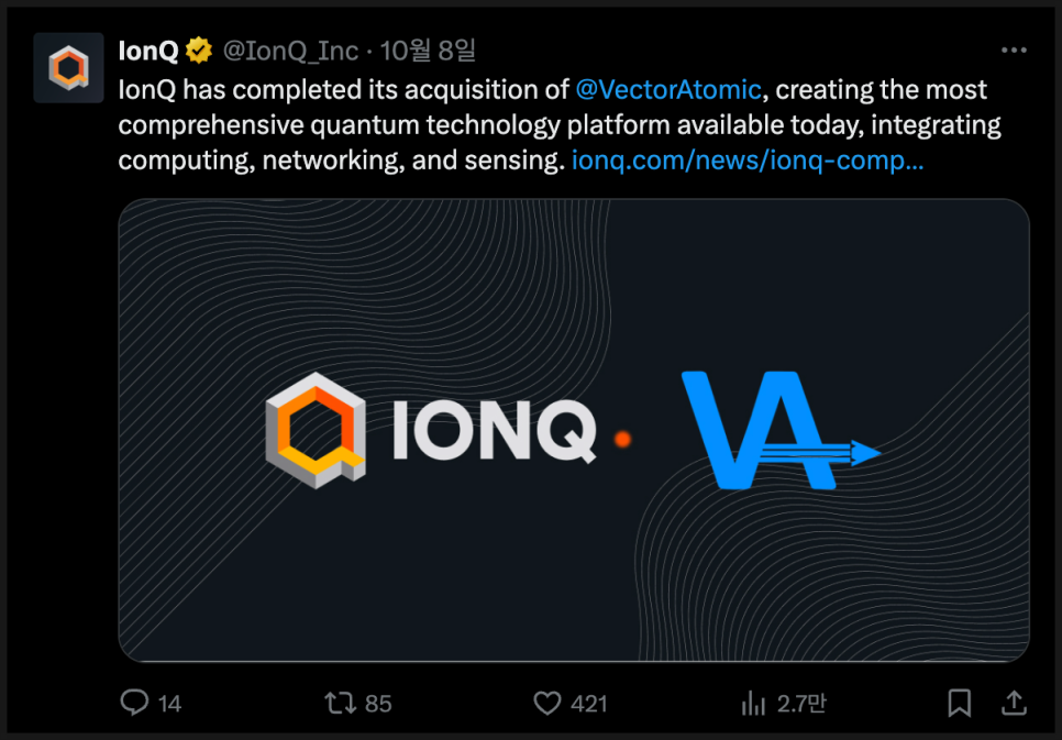 이번 발표 이전에도 아이온큐는 여러 전략적 움직임을 보여왔습니다. 올해 초에는 영국의 양자 하드웨어 기업 Oxford Ionics를 약 10억 8천만 달러에 인수했는데요. 이 회사는 양자컴퓨터를 더 안정적이고 확장 가능하게 만드는 핵심 기술을 가지고 있습니다. 덕분에 아이온큐는 자사 기술의 확장성을 강화하고 핵심 부품에 대한 통제력을 높이게 됐습니다.