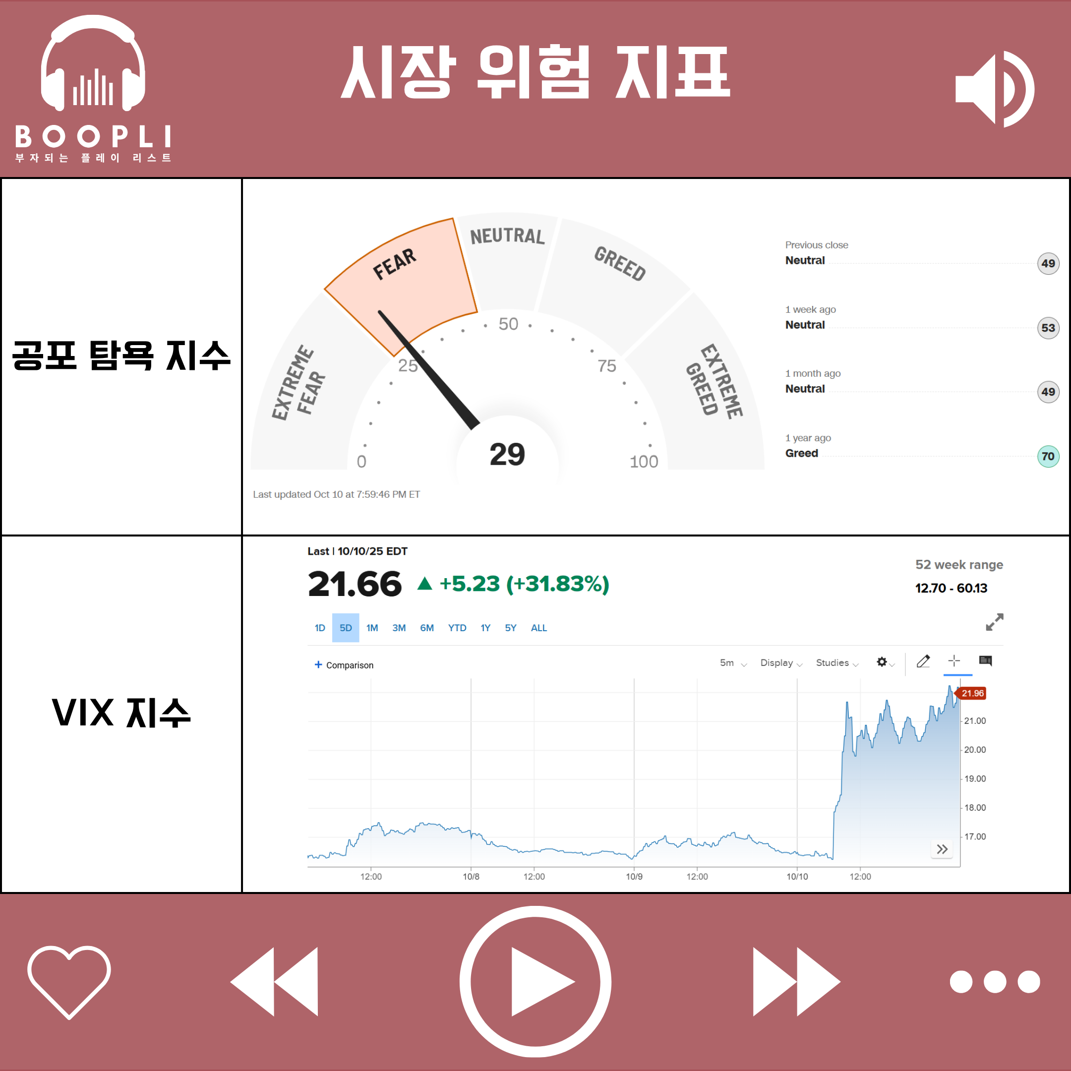 최근 미국 증시는 금리 인하 기대감과 AI 모멘텀에 힘입어 신고가 랠리를 이어왔지만, 트럼프 대통령의 대중국 관세 강화 발언이 조정의 계기로 작용한 것으로 보인다.