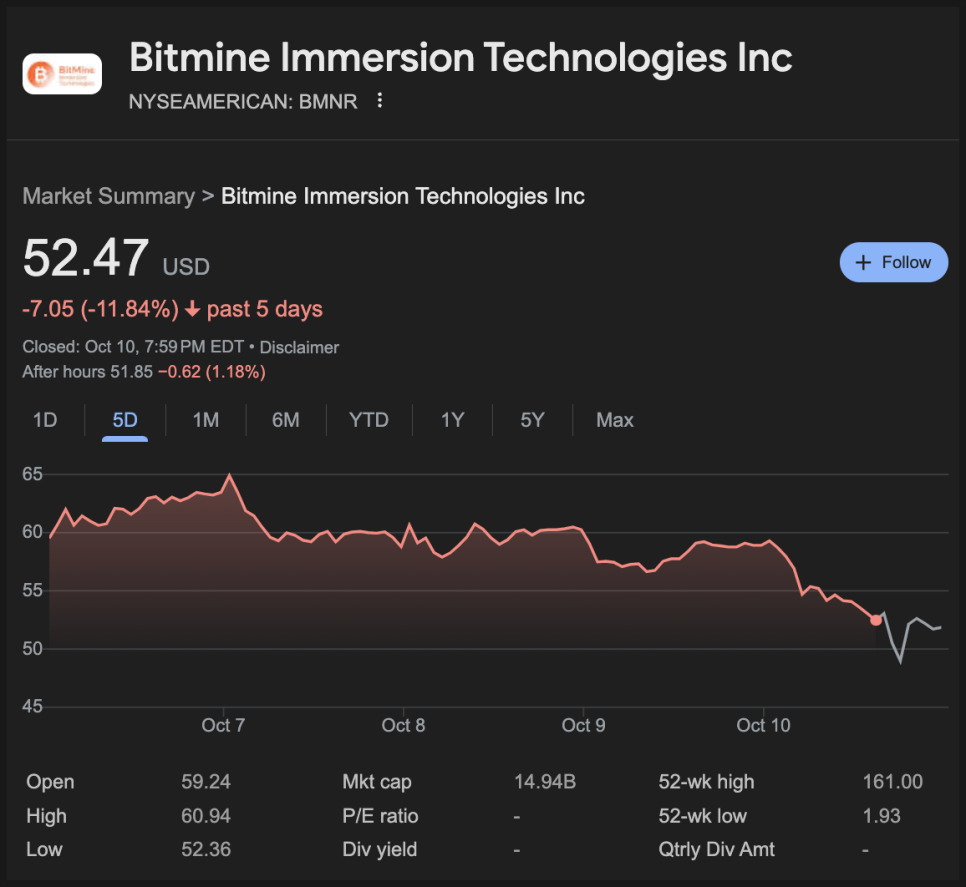 2025년 10월 12일에 다룰 종목은 비트마인 이머션 테크놀로지스(BMNR)입니다.