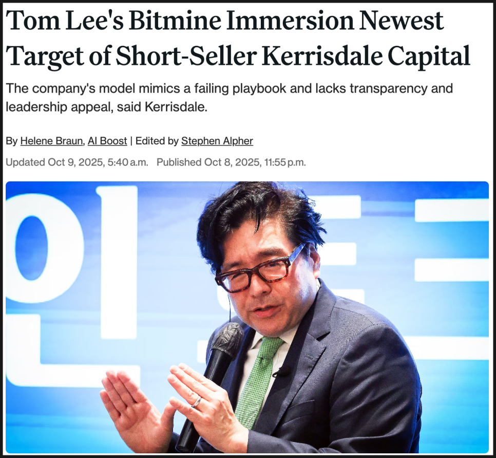 케리스데일 캐피털의 핵심 주장은 이렇습니다. “비트마인은 과거 마이크로 스트래티지 마이클 세일러가 성공시켰던 모델을 따라 하고 있지만, 시장 환경은 이미 달라졌고, 그 모델은 지금 더 이상 작동하지 않는다.”