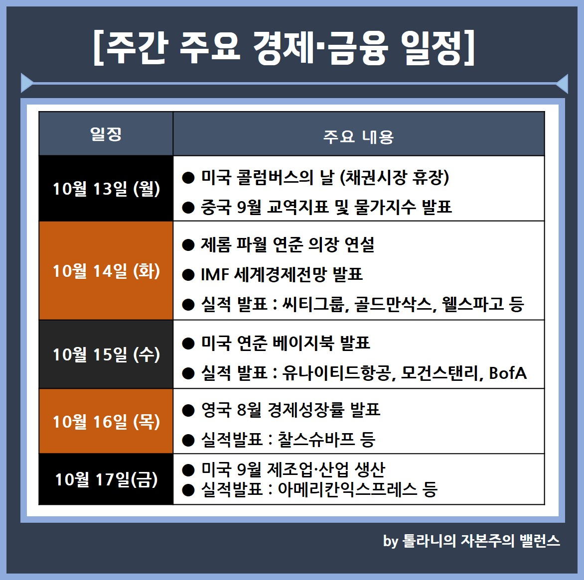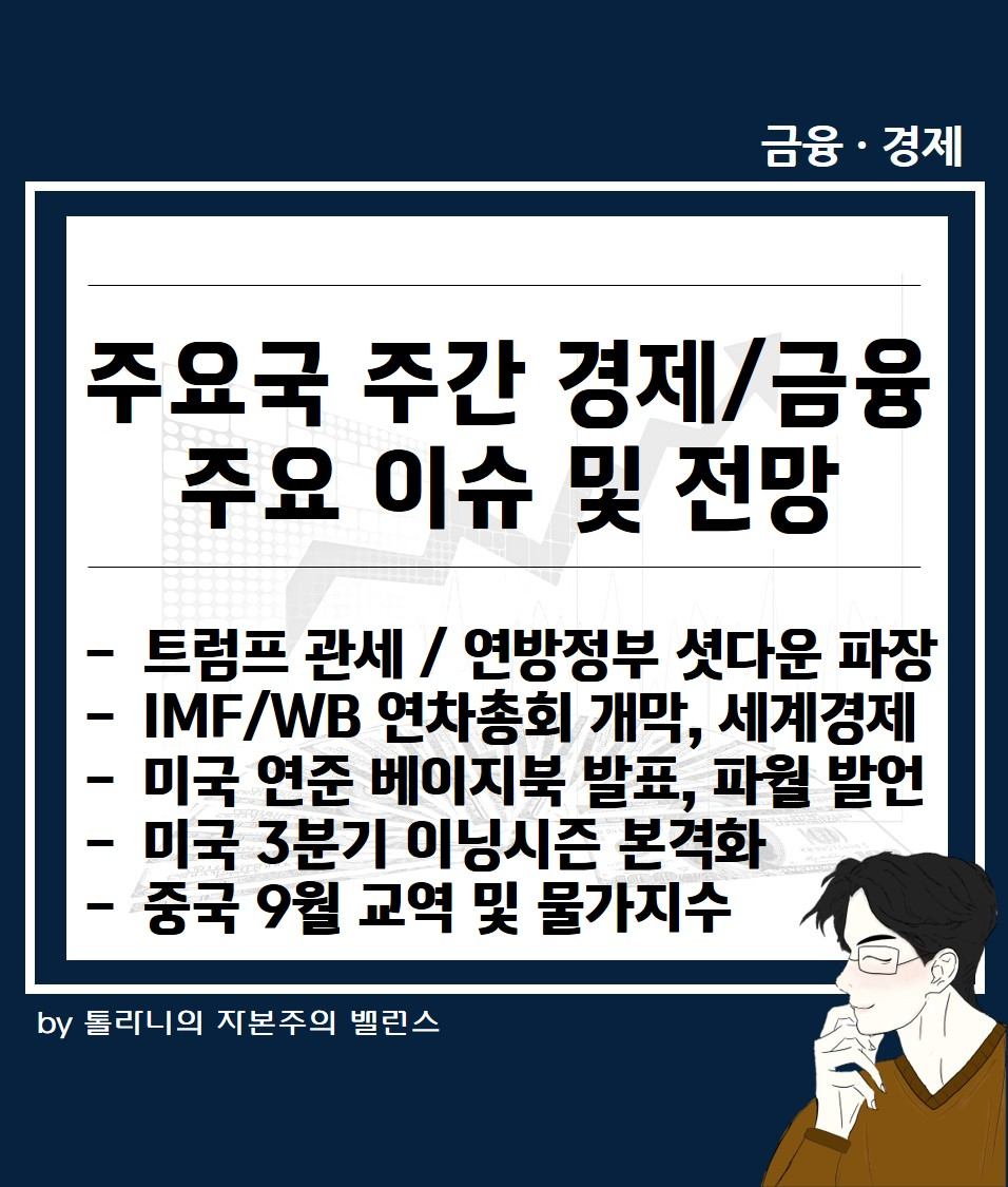 지금까지 '연방정부 셧다운 파장, 미국 3분기 어닝시즌 본격화 등 미국 증시 일정 및 주요 국가 경제·금융 이슈' 관련하여 알아보았는데요.