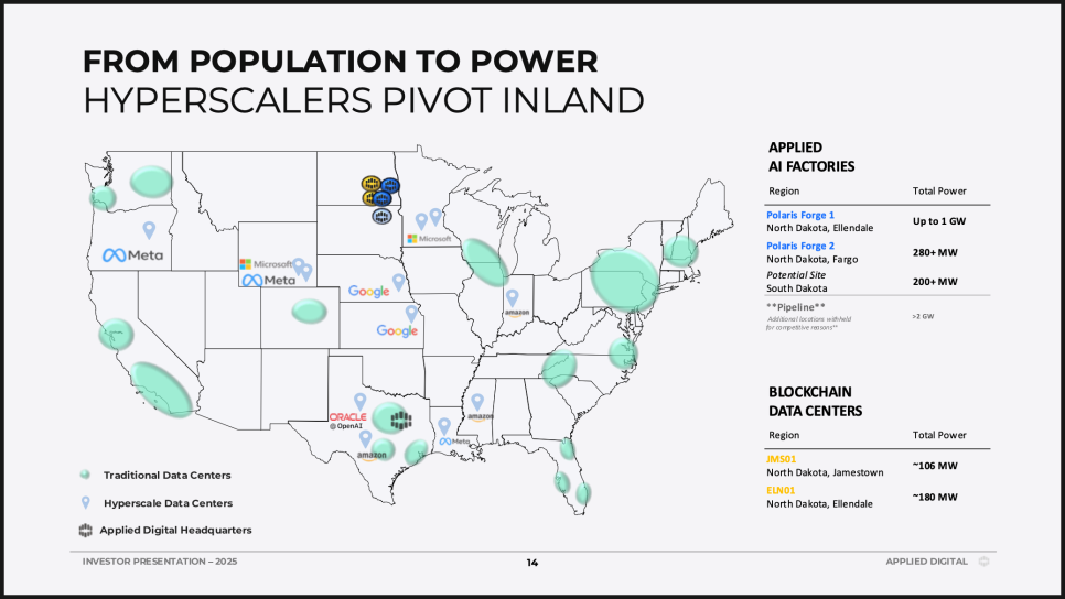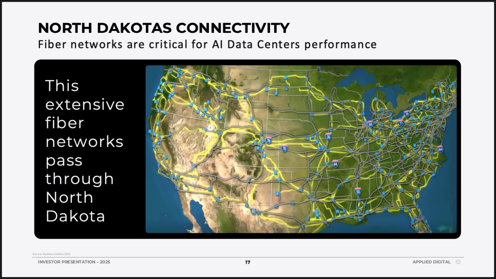 대부분의 대형 기업은 세금 혜택을 받기 위해 도시와 경쟁적으로 협상하지만, Applied Digital은 전력 비용이 저렴하고 부지가 넓은 중소도시를 선택했습니다. 이런 지역은 규제 부담도 적고 커뮤니티와의 관계도 비교적 원활하다는 장점이 있습니다.