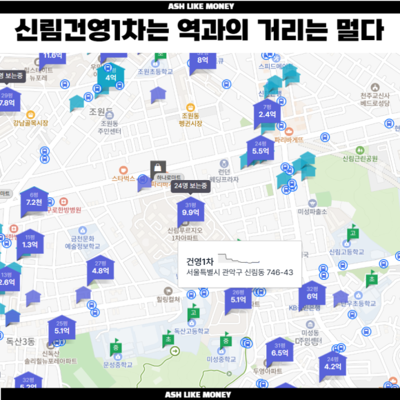 신림동 건영아파트는 관악구 미성동 746-43번지 일대로 대지면적은 20,789㎡이며 지하 4층~지상 23층, 총 10개동 640세대 이상으로 탄생한다. 지하철 2호선 신대방역, 구로디지털단지역과 가까우며 2호선, 7호선 환승역인 대림역과 2호선 신림선이 2KM 이내에 있다. 그래서 구로 및 가산디지털단지에 직장이 있다면 괜찮은 위치이며 저렴한 구역이고 CBD나 YBD도 접근하기도 나쁘지 않다.