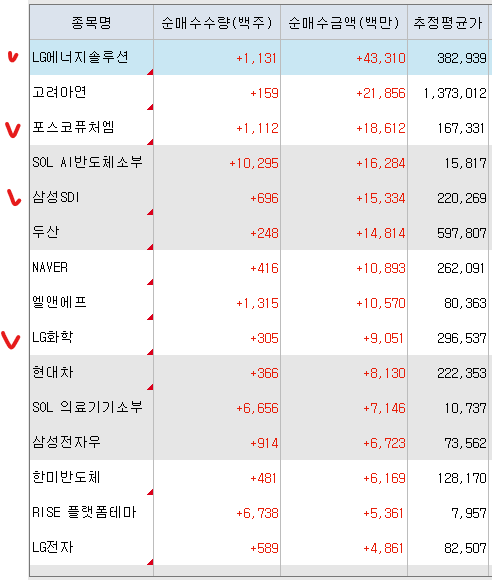 <외국인 매수 종목>