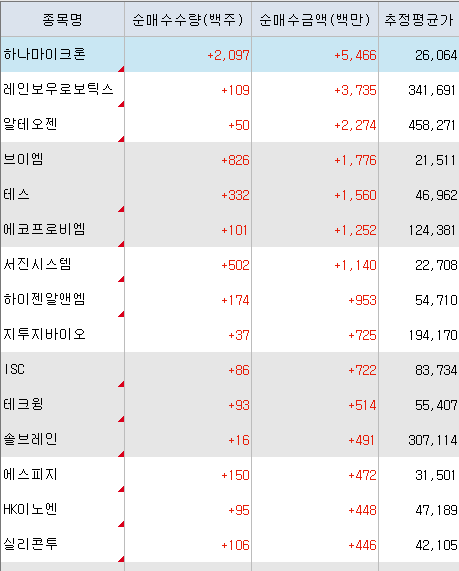 <연기금 순매수 상위 종목>