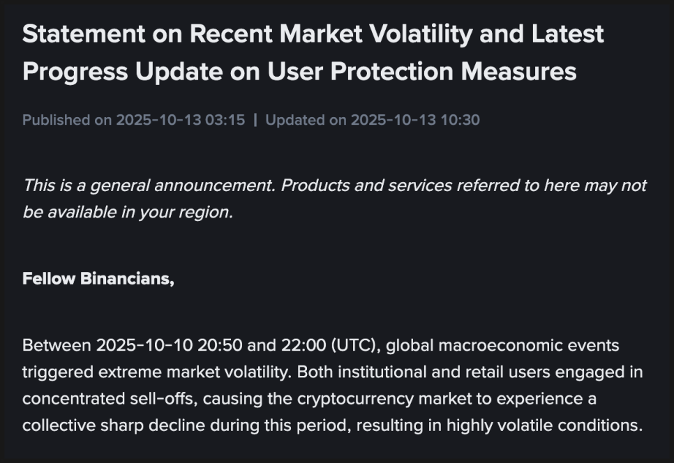 사상 최대 규모의 폭락에 대응한 바이낸스