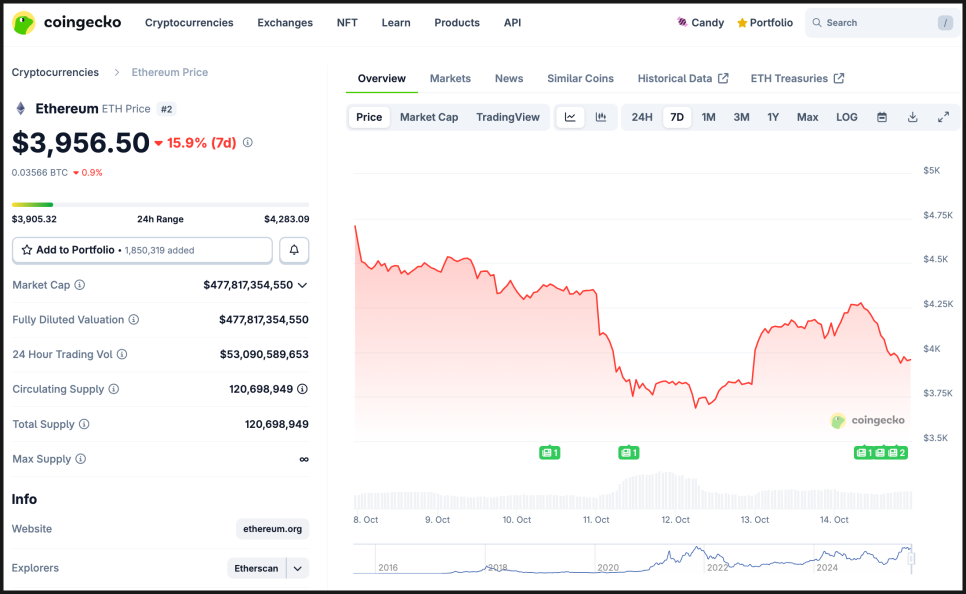 비트마인은 Ark Invest와 Founders Fund, Pantera Capital, Galaxy Digital 등 주요 기관 투자자들의 지원을 받고 있으며, 이더리움 유통량의 5%를 목표로 장기 매집 전략을 세우고 있습니다. 특히 이더리움 가격이 최근 11% 이상 급락한 시점에 매수를 진행했다는 점에서, 명확한 ‘저가 매집’ 전략이 보입니다. 공포 속에 매수하는 전형적인 기관의 패턴이죠.