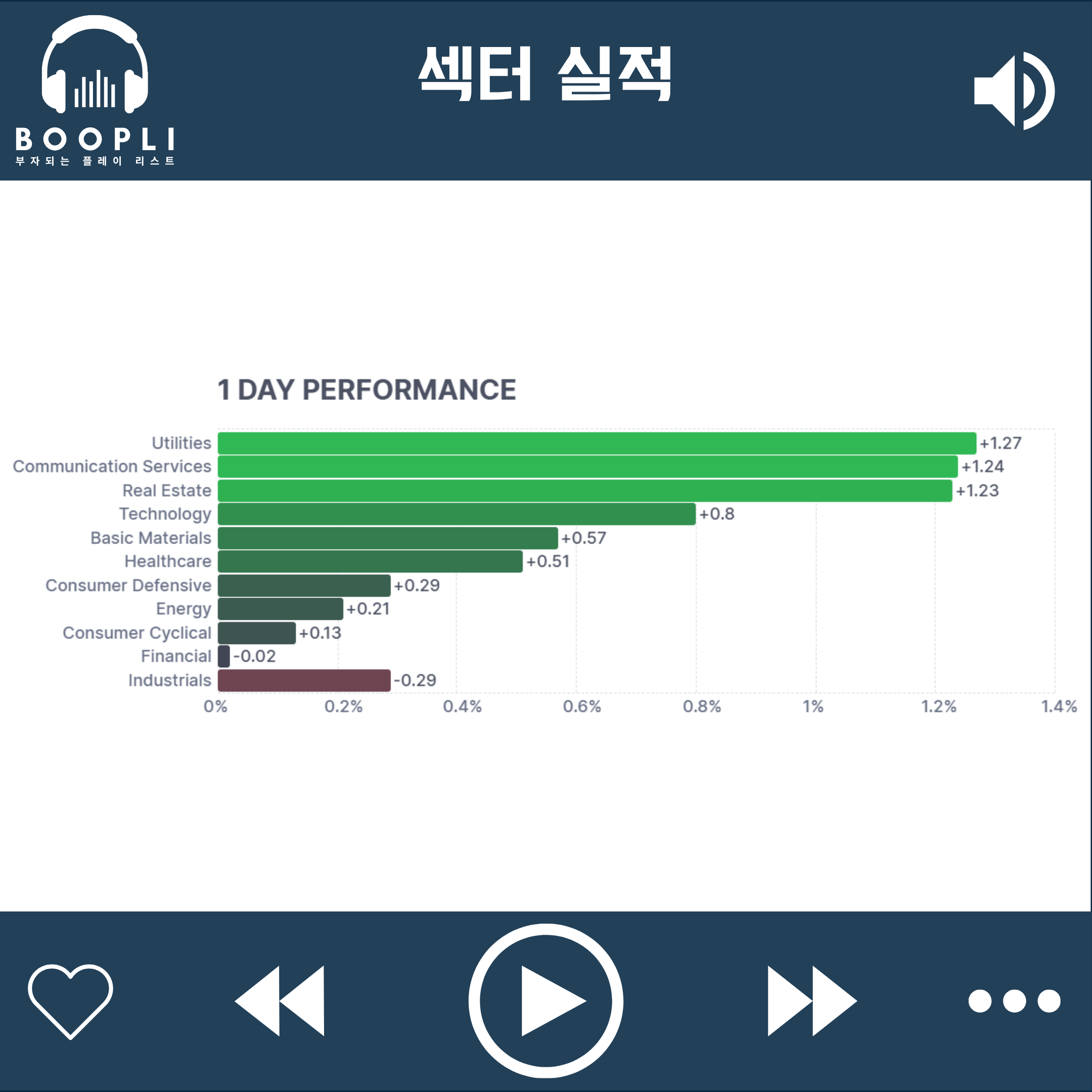 유틸리티 섹터가 상승을 주도했으며 이어서 커뮤니케이션 서비스, 부동산, 기술, 원자재, 헬스케어 순으로 강세