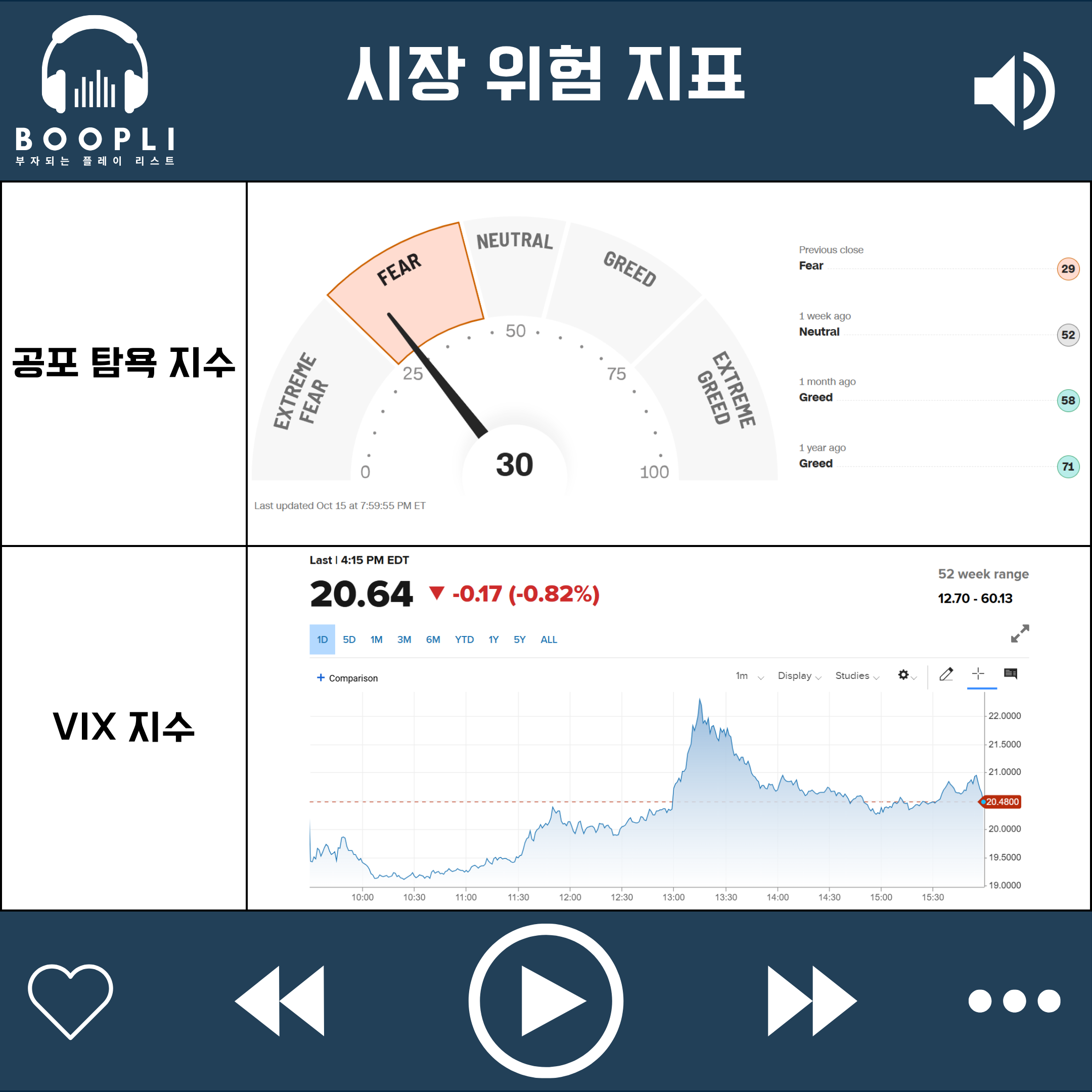 공포 탐욕 지수는 큰 변동 없이 공포(Fear) 단계 유지