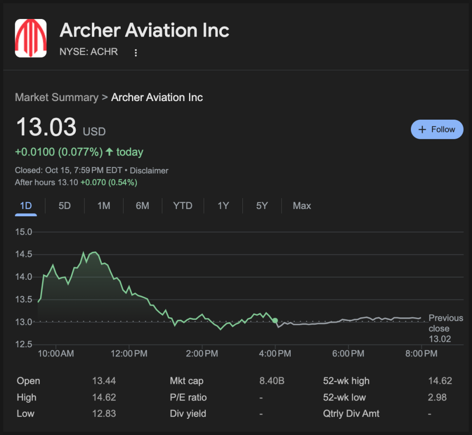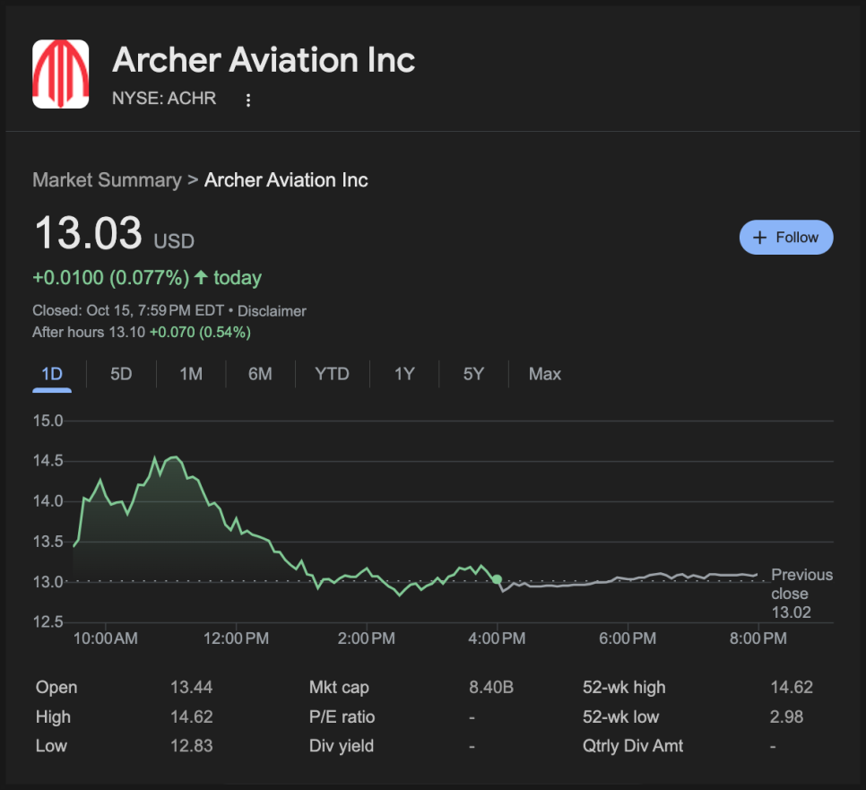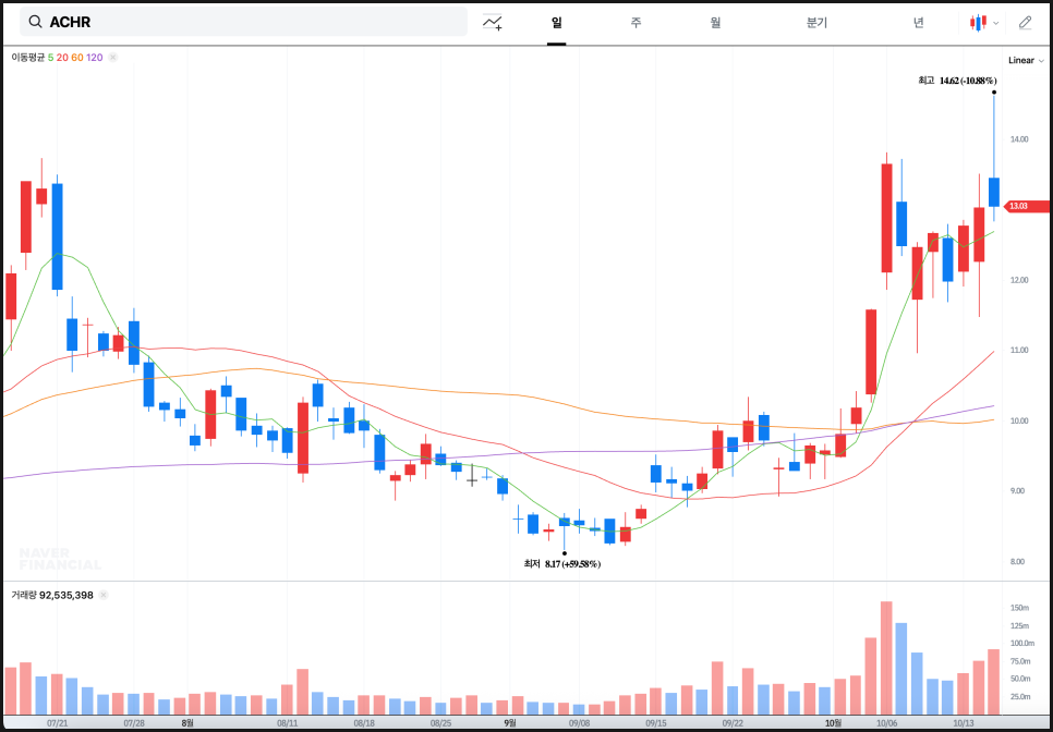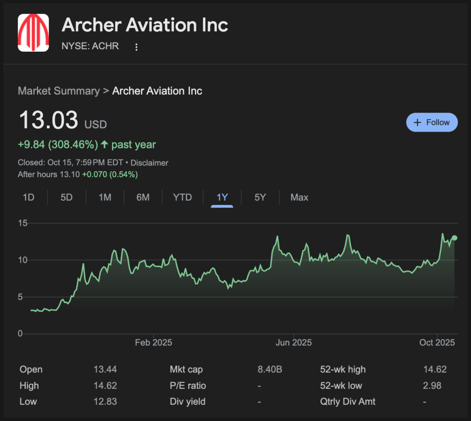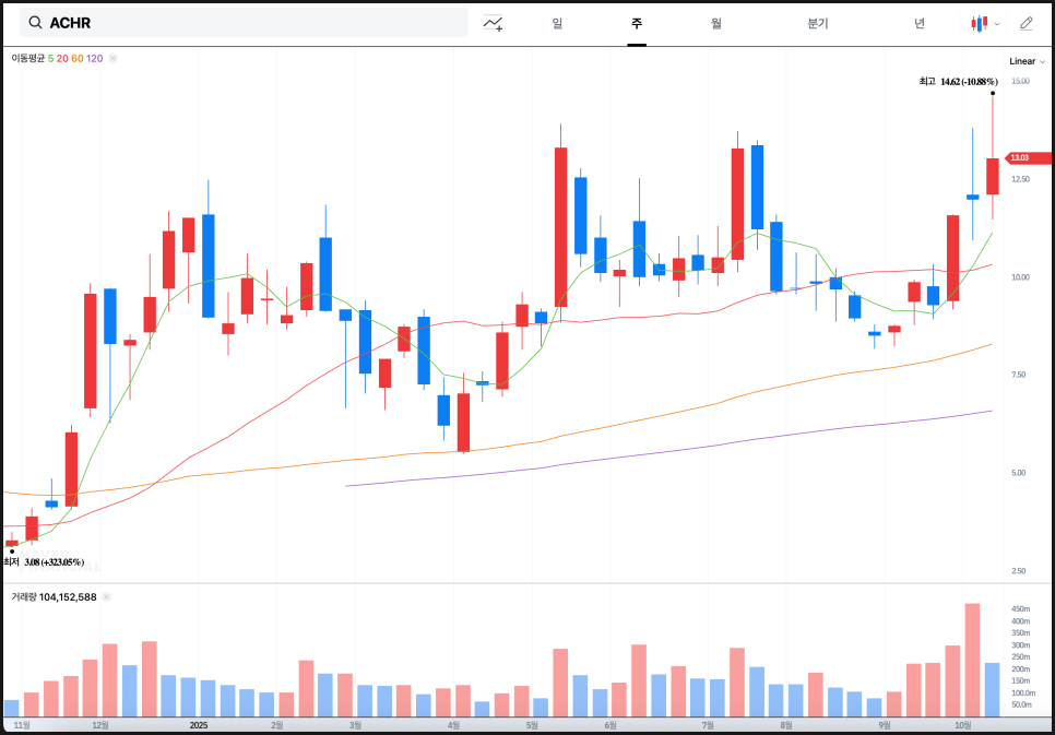 2025년 10월 16일 다룰 종목은 바로 아처 에비에이션(ACHR)입니다.