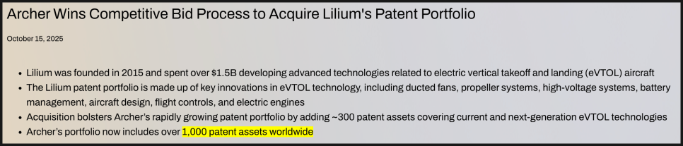 당시 릴리움의 기술은 업계에서 “시대를 앞서 있다”는 평가를 받았지만, 자금 조달에 실패하면서 파산 절차에 들어갔습니다. 아처는 바로 이 핵심 특허들을 불과 2,100만 달러에 인수했습니다. 개발에 15억 달러가 들어간 기술을 헐값에 가져온 셈이죠.