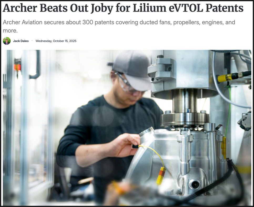 아처가 릴리움으로부터 확보한 특허에는 고전압 시스템, 배터리 관리 기술, 비행 제어, 덕트팬 추진 시스템 등 eVTOL(수직이착륙 전기 항공기)의 성능과 안전성을 좌우하는 핵심 기술이 다수 포함돼 있습니다. 특히 주목할 점은, 이번 거래가 경쟁 입찰을 통해 진행됐고, 아처가 주요 경쟁사인 조비 에비에이션(Joby Aviation)을 제치고 낙찰받았다는 사실입니다.